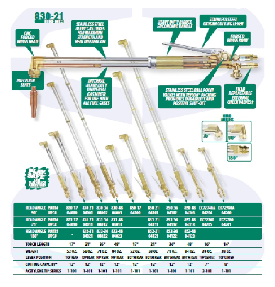 Uniweld 851-36Fb / Upc 04117 Hand Cutting Torch 75° 36" Bottom Rear Lever Fuel/Gas W/Flashback Arre