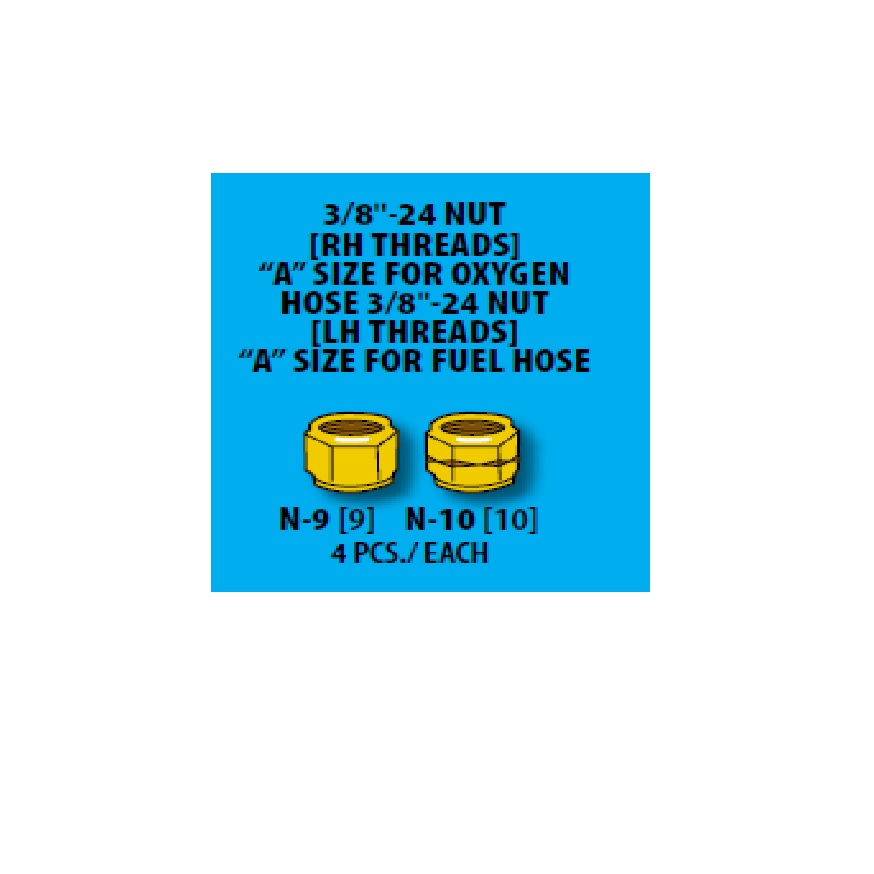 Uniweld N-9 / Upc 43354 Hose Nut Inch A Inch 3/8¨- 24 R.H. (Sold In Multiples Of 50) Minimum Order