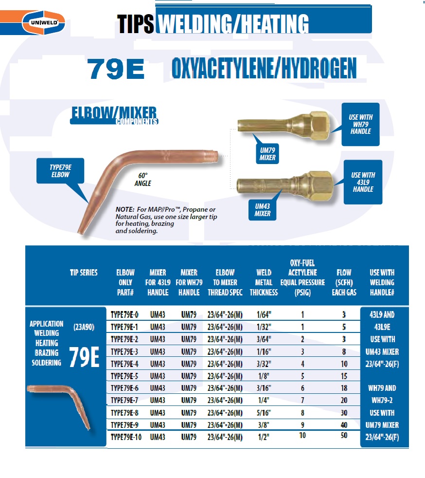 Uniweld Type79E-0 / Upc 30470 Oxyacetylene/Hydrogen Tip Elbow Number 0 Minimum Order 1