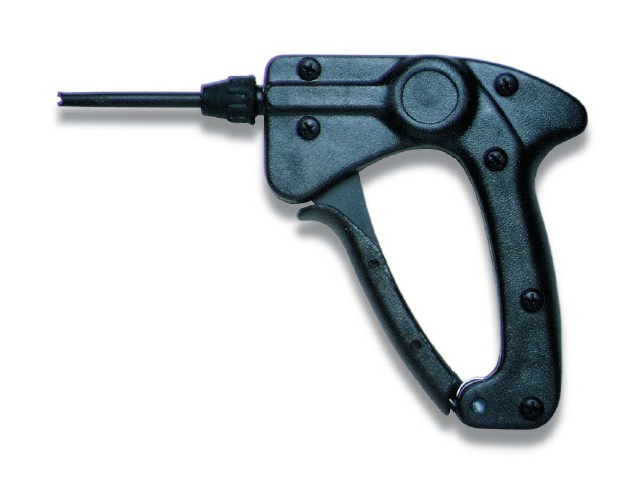 The 14Hp1C Consists Of A Sturdy Lexan Plastic Frame With A Built-In Gearing. Clockwise Rotation Squeeze The Large Trigger And A Quality Solderless Connection Is Made. The Universal Collet Accommodates All Wrapping Bits And Sleeves. One Squeeze Of The Trigger Provides 10 Rotations Of The Bit. The Tool Is Mounted With An "A" Nose Piece. The Model Number Of The Tool Does Not Include The Wrapping Bit And The Sleeve.
