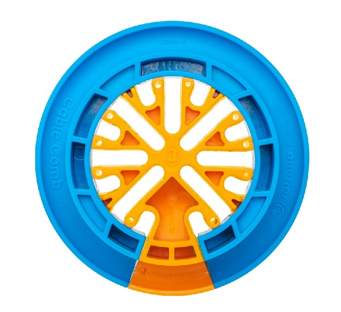 Compatible With Any Cables Or Wires Up To 1/4" (6.35 Mm) In Diameter, Such As: Coaxial (Not Rg6 Quad), Plenum, Control, Cat5/5E/6 Network, Speaker, And Alarm Cables And Wires Holds Up To 24 Cables (0.25" In Diameter) Unique Design Allows Individual Cables To Be Loaded Into The Orange Inner Hub At Any Point During Use Without The Need To Find And Thread The Cable Ends Cables Can Also Be Removed At Any Point During Use By Sliding The Blue Outer Collar Back And Removing Them Through The Large Opening Of The Collar Made From A Naturally Slick Plastic Material Which Reduces Friction And Unnecessary Wear On The Cables Being Combed Built-In Finger Grooves Make It Smooth And Comfortable To Pull Through Cables Without Needing To Worry About The Orientation Of The Tool Our Ccb-25 - Cable CombŪ Has Been Honored With The 2021 Ce Pro Best Product Award!