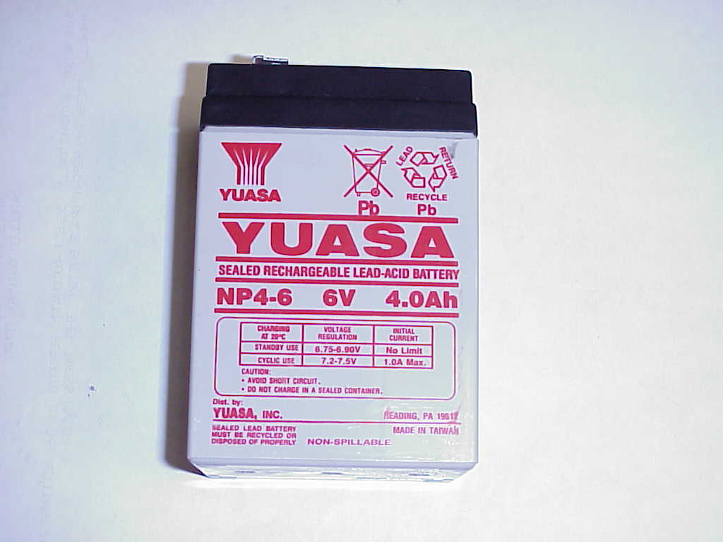 Yuasa Np4-6 6 Volt 4.0 Amp Battery New 6 Volts 4.0 Ah Sealed Lead Acid. Dmensions 2.76 Inches Length X 1.85 Inches Wide X 4.15 Inches High, 2.6 Lbs