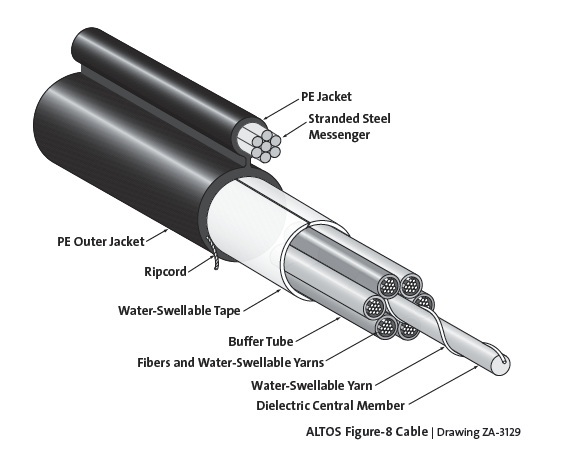 12-Fiber AltosŪ Cable Enhanced 2.5 Mm Buffer Tubes Figure-8 Armored Smfe 0.4/0.4/0.3 Db/Km 12F/Tube Markings Printed In Ft