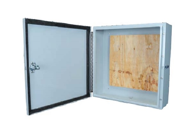 Metal Nema 4 Enclosures- Hinged The Multilink Metal Nema 4 Enclosures Listed Below Have Now Been Ul Listed, And Nema 4 Approved. The New Design Features A 216 Can Wrench Compression Latch, Reversible Door, 3/4" Plywood Backboard, Padlockable Over Center Draw Latch, And 100% Weatherproof Gasketing. Standard Colors Are Beige And Gray. Mounting Bracket Sold Separately