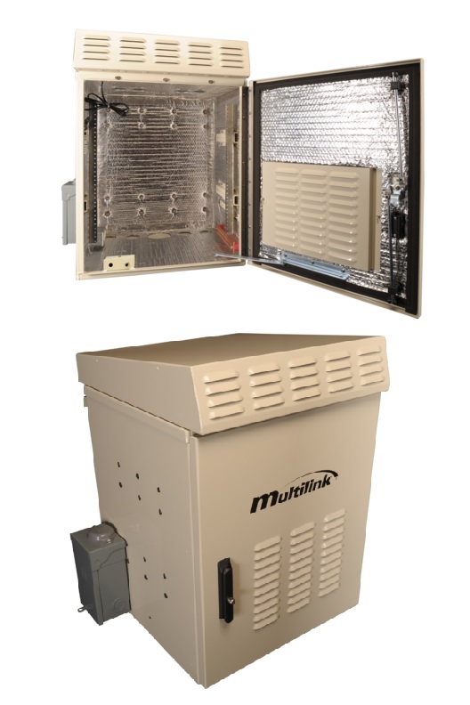 General Specifications Hardware Stainless Steel Door 3 Point Latch Piano Hinge Wind Stop Powering 125V Duplex Receptacle W/Service Entrance Heating & Cooling Dual Thermostatically Controlled, 48V Dc, 100Cfm Fans With Patented Lifesaver Roof And Heat Shield Uom Each Cable Entrance 4 X(Ø1.5 X 2.25") Dual Stage Knockouts 1 X(Ø4.00") Single Stage Knockout