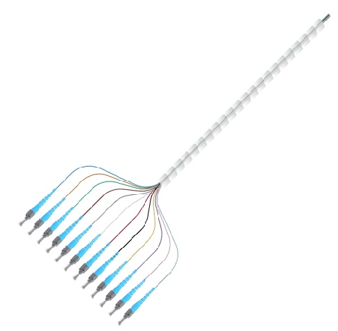 St/Upc Fiber Optic Pigtail 065-090-10-Ml St/Upc, 12 Fiber Spiral Wrapped, Tight Buffered Fiber, Riser Rated, 900Um Singlemode 9/125Um, Bend Insensitive, 8" Breakout