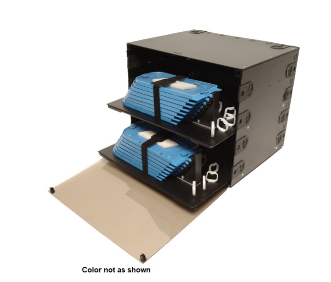 Dimensions: 14.88"H X 17"W X 14.0"D Material: .060" Powder Coated Aluminum Splice Tray: (16) 4048-Sstp Or (16) 4072-Sstp (8 On Each Shelf) Capacity: 576 Single 2048 Mass Fused Fibers