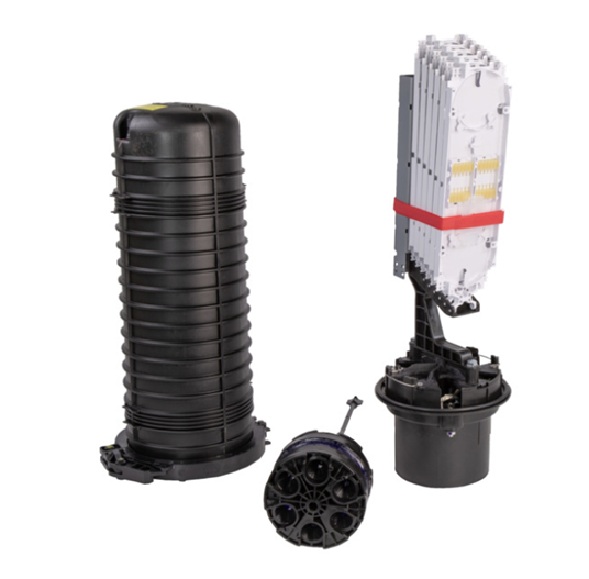 FoscŪ 450 B6 Fiber Optic Splice Closure, Gel Cable Sealing, Four Pre-Installed 12-Splice Trays, 6 Cable Attachments, With Test Valve