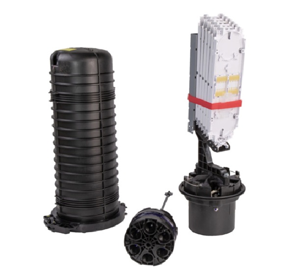 FoscŪ 450 B6 Fiber Optic Splice Closure, Gel Cable Sealing, One Pre-Installed 24-Splice Tray, 6 Cable Attachment, Three Ground Feedthrough, With Test Valve