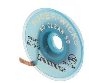 Chemtronics 60-5-5 Soder-WickŪ No Clean Sd The Fastest, Cleanest No-Clean Flux Desoldering Braid Packaged In Static Dissipative Bobbins. 0.145"/3.7Mm-Brown -5' (15.2 M) Bobbins/Pack 25 Per Pack