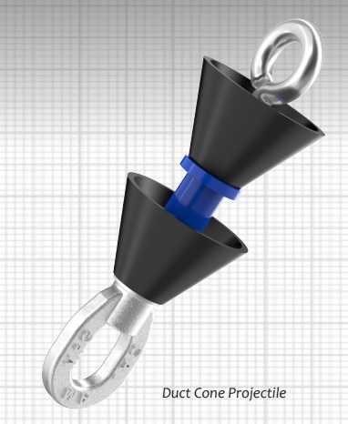 Used to pneumatically run pull-line through raceways, the Cal Missile™ duct projectiles are fast and efficient, easily blowing through out-of-round duct. The Cal Missile feature dual fastening rings, one on each end of the projectile, creating versatile mule-tape tie-points. Cal Am’s highly engineered polymer offers elasticity, toughness, and durability. Available with either two or three polyurethane cups, these cups are resistant to solvents, oxygen, ozone, and sunlight and have an outstanding flex-life.