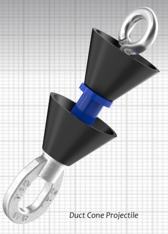 Used to pneumatically run pull-line through raceways, the Cal Missile™ duct projectiles are fast and efficient, easily blowing through out-of-round duct. The Cal Missile feature dual fastening rings, one on each end of the projectile, creating versatile mule-tape tie-points. Cal Am’s highly engineered polymer offers elasticity, toughness, and durability. Available with either two or three polyurethane cups, these cups are resistant to solvents, oxygen, ozone, and sunlight and have an outstanding flex-life.