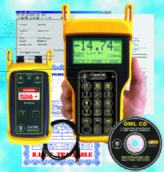 Kit Contents: -Power Meter: Fiber Owl Optical Wavelength Laboratories 4 Bolt -Light Source: Dual Owl Optical Wavelength Laboratories 850 -Accessories: -Owl Optical Wavelength Laboratories Reporter Software -Product Manuals -Download Cable -9-Volt Batteries -Nist Certificate -Carrying Case -Protective Rubber Boots -Carrying Straps