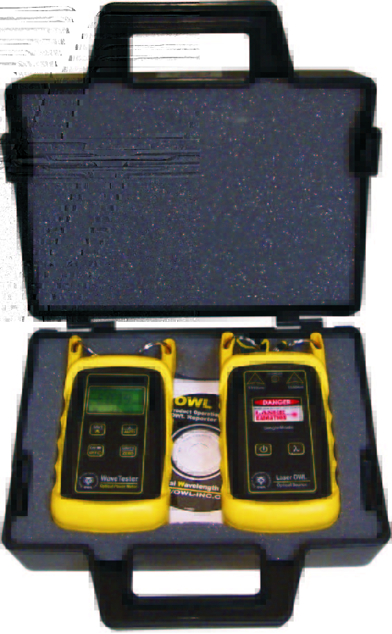Kit Contents: Power Meter: Wavetester Light Source: Laser Owl Accessories: Owl Optical Wavelength Laboratories Reporter Software Product Manuals Download Cable 9-Volt Batteries Nist Certificate Carrying Case Protective Rubber Boots