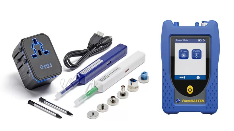 Fibermaster Multimode/Single-Mode Power Meter With Interchangable Lc/Sc/St/Fc/2.5Mm/1.25Mm Connectors, Inspection Port, Visual Fault Locator, Power Adapter (1), Usb Cable (1), Stylus (2), Hang. Strap (1), Cleaning Pen 1.25Mm (1) And 2.5Mm (1), Mm 2M Cable Lc-Sc (1), Mm 2M Cable Sc-Sc (1), Sm 2M Cable Lc-Sc (1), Sm 2M Cable Sc-Sc (1), Power Meter Connectors (Lc,Sc,Fc,St,1.25Mm Univ, 2.5Mm Univ), Quick Ref. Guide (1)