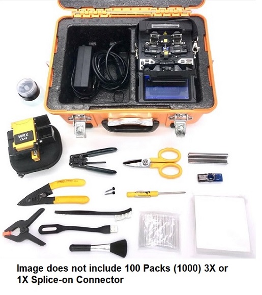 Optix America Wrx400H-Bundle Wrx400H Handheld Fttx Clad Alignment Splicer Kit 100 Packs (1000) 3X Or 1X Splice-On Connector (Customizable), 3-Pack Fast Track Calibration