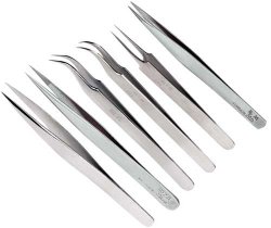 Description: Anti-Fatigue Tweezers With Sharp, Angled Tips Grips Small Parts Durable, Brushed Satin-Finish Stainless Steel Or Chrome-Plated Carbon Construction