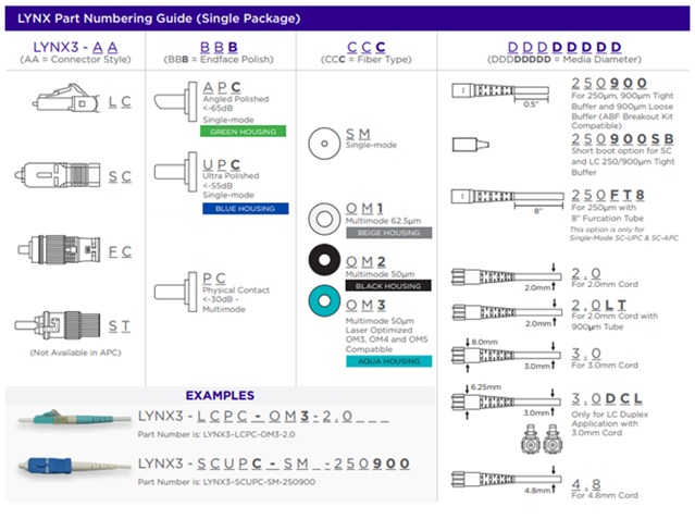 P/N Lynx3-Lcpc-Om2-250900 Sumitomo Lynx-Customfit(Tm), Lc, Pc, Mm50-Om2, 250Um & 900Um