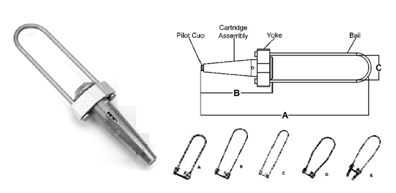 A 11.88 Inches B 5 Inches C 1.63 Inches Bail Type A Std. Pk. 50 Primary Strand Application 3/8 Range 0.360-0.405 Inches