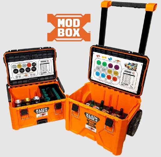 Now Included With Your Plus And Max Tornado Blowing Machines Is The Klein Tools® Modbox™ Mobile Workstation. The Rolling Case Is Able To Safely Carry All Your Supplied Accessories And More. The Cases Are Made With Impact Resistant Polymers, Ip65 Rated For Protection Against Debris And Rain, And Can Withstand A 250-Pound (113.4 Kg) Carrying Capacity. They Are Stackable And Lock In Place. Built-In Side Rails Accommodate A Variety Of Attachments.