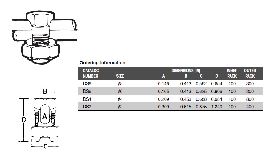 P/N Ds6 T&B Abb High Strength Split Bolt Connector Ground Clamps Number 6 Pack Of 100