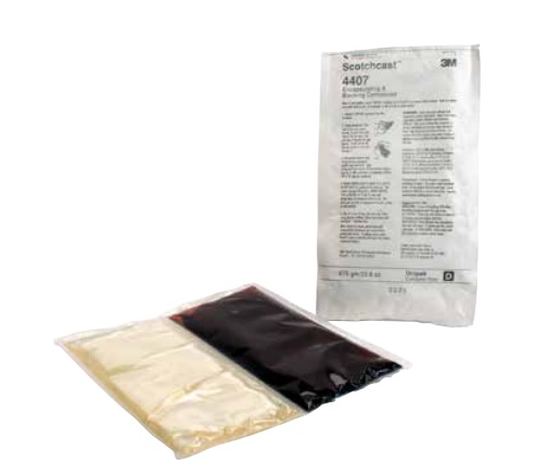 3M™ Scotchcast™ Encapsulating and Blocking Compound 4407 is a hard encapsulant designed specifically for permanent splice protection and cable blocking applications. Scotchcast 4407 compound is formulated for virtually every telecommunications application requiring a hard, non-reenterable compound with good handling and performance characteristics. Scotchcast 4407 compound is a two-part polyurethane compound. It features excellent wetting properties and low viscosity, which means it flows quickly and freely. Its low temperature cure properties mean that it may be used in a wide range of temperatures. Scotchcast 4407 compound doesn’t contain TDI and meets applicable OSHA standards for safety.