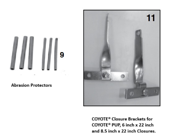 Aerial Closure Bracket Kit For Classic Coyote Pup, 6 Inch X 22 Inch, And 8.5 Inch X 22 Inch With Abrasion Protectors