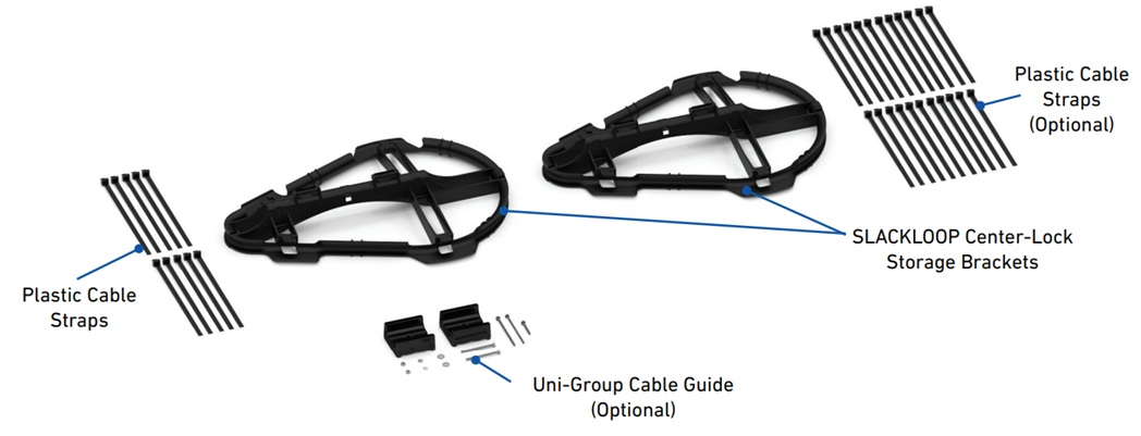 Slackloop Center-Lock Storage Kit (2) Storage Brackets, (10) Cable Straps And The Optional: U: Uni-Group Cable Guide T1: Pack Of 25 Additional Additional Heavy-Duty Plastic Cable Straps 13 In Long (Catalog Number: 80808917)
