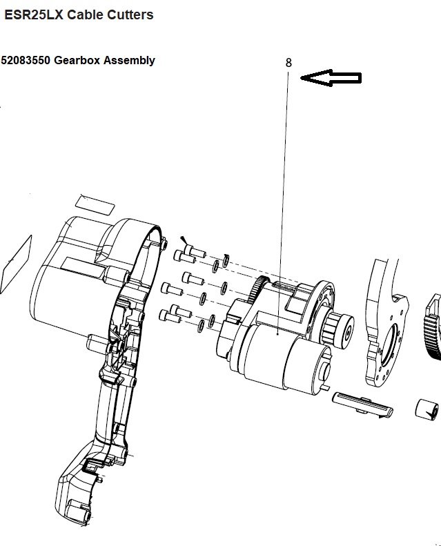52083550 Gearbox Assembly Used With Esr25Lx Battery-Powered Ratcheting Cable Cutters