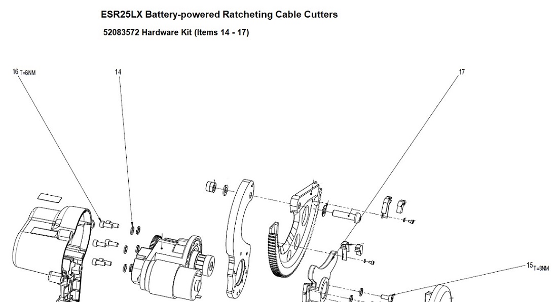 52083572 Hardware Kit (Items 14 - 17) Used With Esr25Lx Battery-Powered Ratcheting Cable Cutters