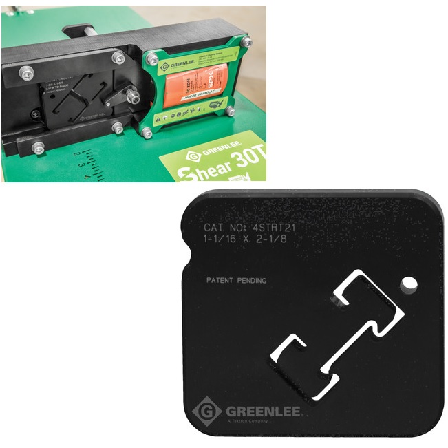 Strong Steel Dies Produce Burr-Free, Precise Cuts With Greenlee Shear 30T Die Grooves Ensure Dies Are Inserted Correctly Every Time Quick Die Change System - Easily Swap Out Dies With No Tools Or Loose Parts Retaining Spring Pin Hole In Dies Enables Retraction After Each Cut For Repeated Use Laser-Marked With Catalog Numbers And Sizes For Quick Identification