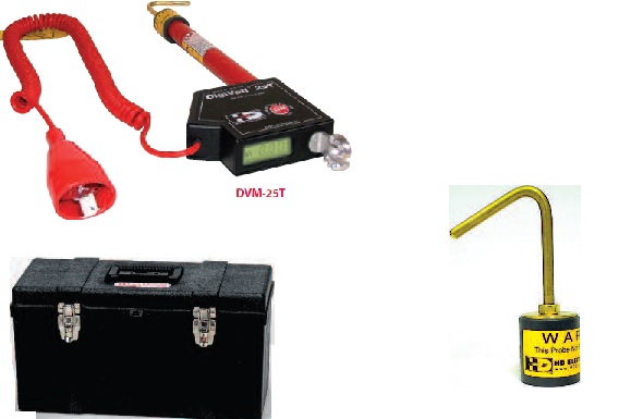 Specifications Sub Brand Hde Type Voltmeter Model Dvm-25T Voltage Rating 50V - 25Kv Accuracy Within 1% Of Reading +/- 3 Counts (Line-To-Ground Measurements) Display Lcd Indicates 3.5 Digits Operating Temperature -13°F To +131°F (–25°C To +55°C) Dimensions 5" W X 4.25" L X 1.38" H (13 Cm X 11 Cm X 3.5 Cm) Frequency Rating 25-1000Hz Ac/Dc Included Single Stick Voltmeter W/Capacitive Test Point Mode, 025-Olps-5 Overhead Brass Hook Probe, Cs-Dvm Case