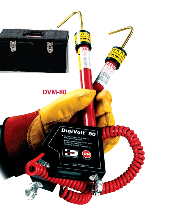 The Dvm-80 Series Are Compact, High Accuracy Digital Voltmeter And Phasing Instruments Designed To Measure Voltages Up To 40Kv And Up To 80Kv When Used With A Pair Of Add-On Resistors. The Two-Stick Design Can Be Used In Both Overhead And Underground Applications. The Digital Meter Displays The True Rms Voltage On The Conductor. The Dvm-80/Dvm-80T Series Voltmeter/Phasers Are Compact, High Accuracy Dual Stick Voltmeter And Phasing Sets That Measure Voltages From 50V To 40Kv And Up To 80Kv With A Pair Of Optional Add-On Resistors. The Dvm-80/Dvm-80T Series Incorporates Phase Accurate Technology, Which Makes All Voltage Readings, Whether Made From Line-To-Line Or Line-To-Ground, Accurate And Repeatable To Within 1%. The Two-Stick Design Can Be Used In Both Overhead And Underground Applications.