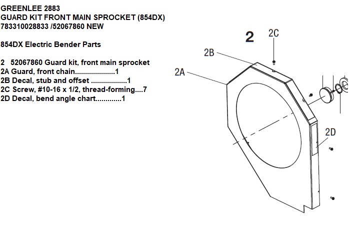 2 52067860 Guard Kit, Front Main Sprocket 2A Guard, Front Chain....................1 2B Decal, Stub And Offset ..................1 2C Screw, #10-16 X 1/2, Thread-Forming...........7 2D Decal, Bend Angle Chart.............1