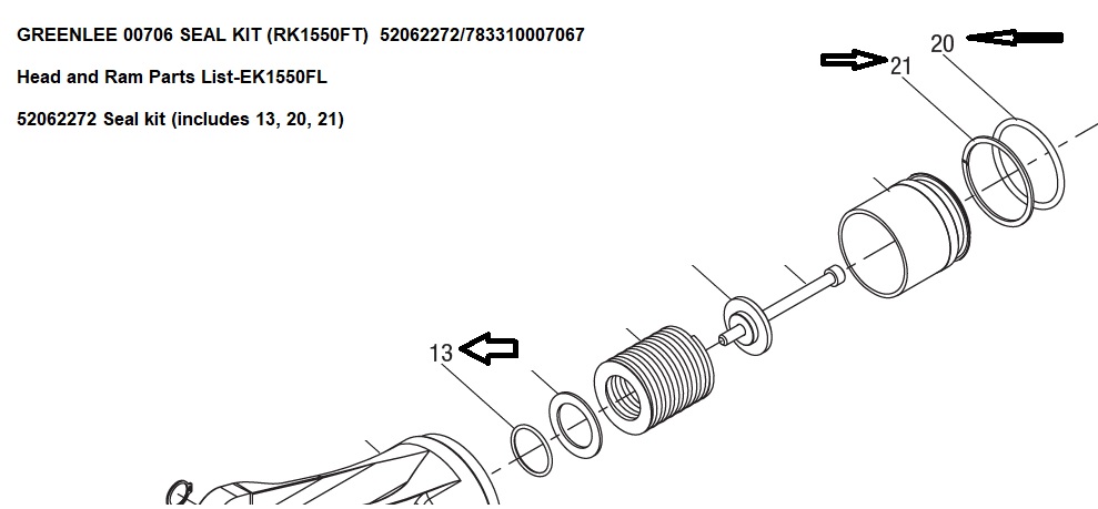 Greenlee 00706 Seal Kit (Rk1550Ft) 52062272 783310007067