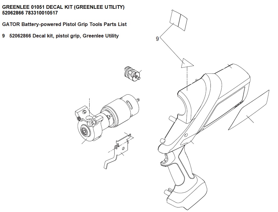 52062866 Decal Kit, Pistol Grip, Greenlee Utility