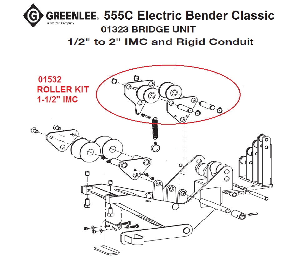 Greenlee 01532 Roller Kit 1-1/2 Inch Imc Squeeze 52065276 783310015321