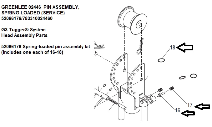 Greenlee 02446 Pin Assembly,Spring Loaded (Service) 52066176/783310024460