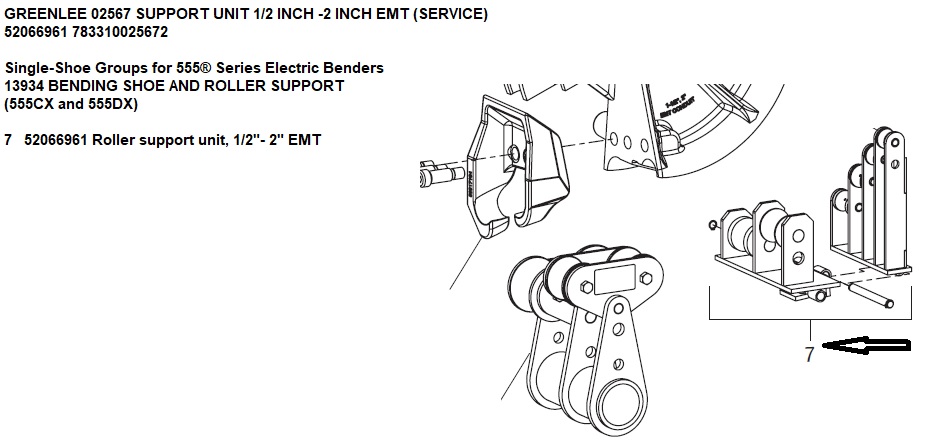 7 52066961 Roller Support Unit, 1/2"- 2" Emt