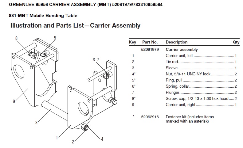 Greenlee 95956 Carrier Assembly (Mbt) 52061979/783310959564