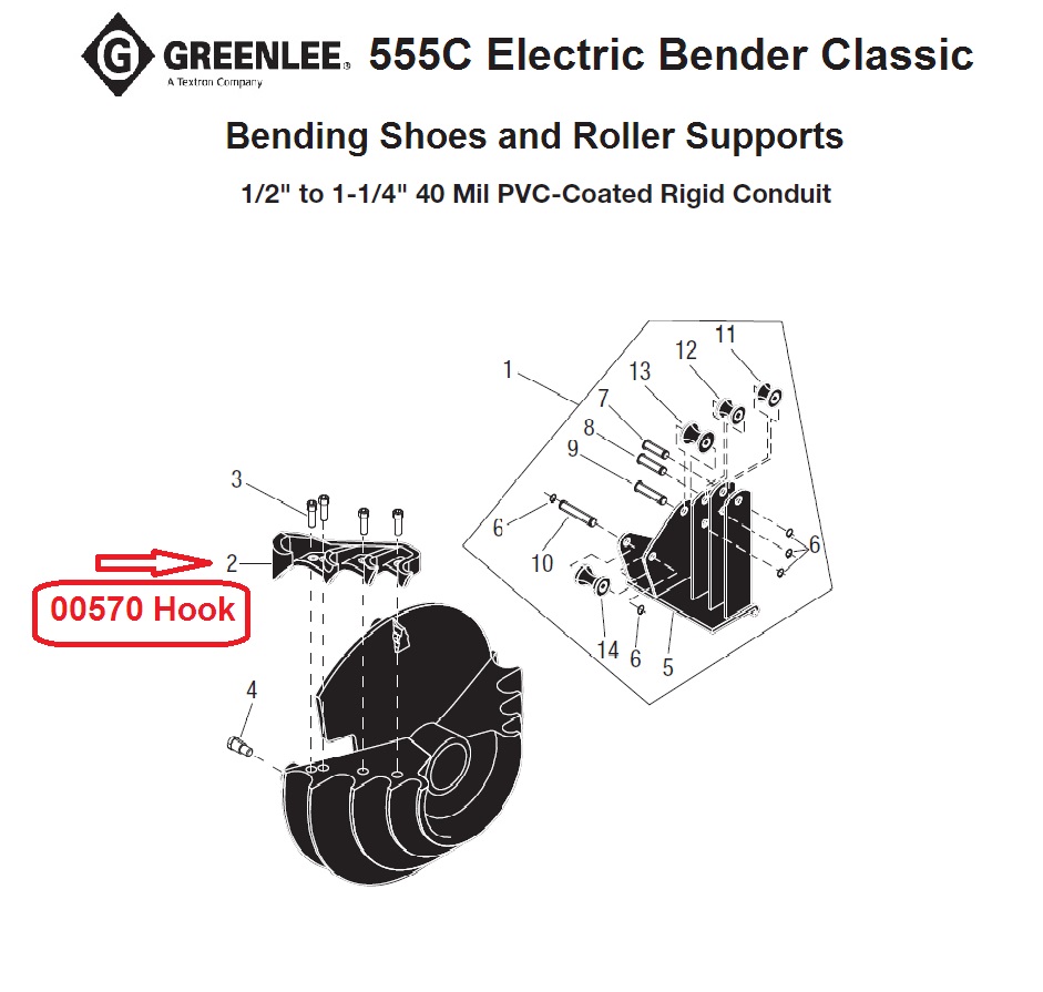 Greenlee 00570 Hook,1/2-1-1/4 Pvc Rigid (Machined) 50005707/783310005704 New