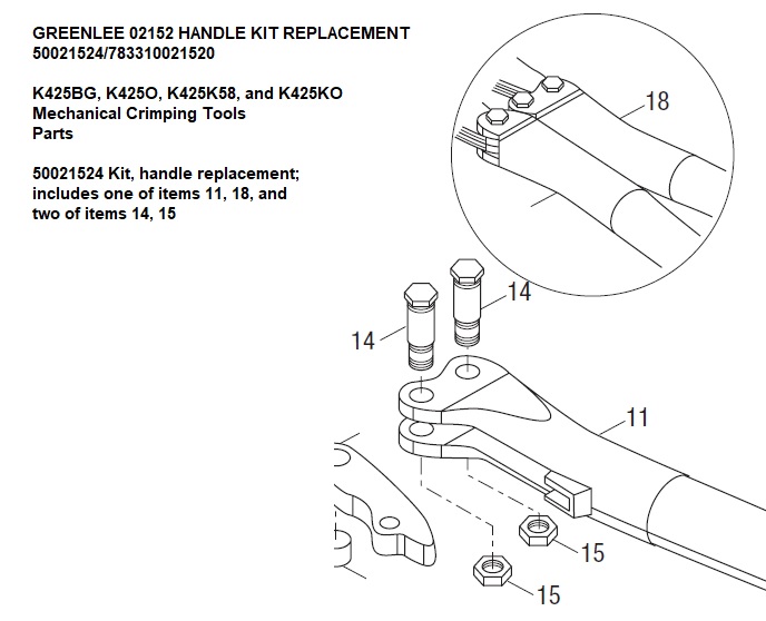 Greenlee 02152 Handle Kit Replacement 50021524/783310021520