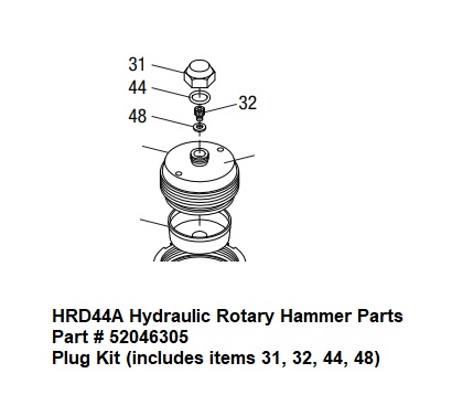 Catalog # 10149 Part # 52046305 Plug Kit (Includes Items 31, 32, 44, 48) Upc # 783310101499 Weight 1.0 Lbs. Used With The Hrd44A Hydraulic Rotary Hammer