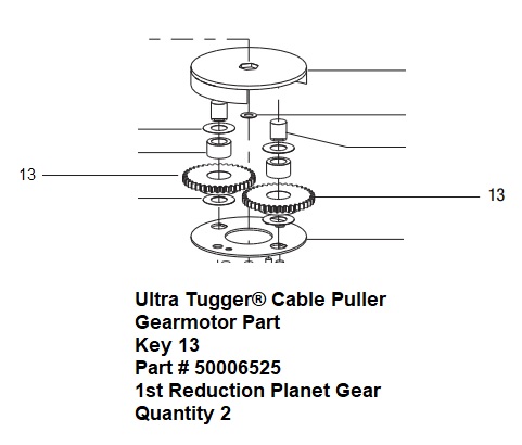 Catalog # 00652 Part # 50006525 Upc # 783310006527 1St Reduction Planet Gear Quantity 2 Weight 1.00 Lb Gearmotor Part Ultra Tugger® Cable Puller