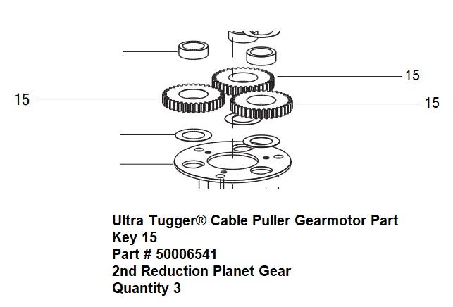 Catalog # 00654 Part # 50006541 Upc # 783310006541 2Nd Reduction Planet Gear Quantity 3 Weight 0.15 Lb Ultra Tugger® Cable Puller Gearmotor Part