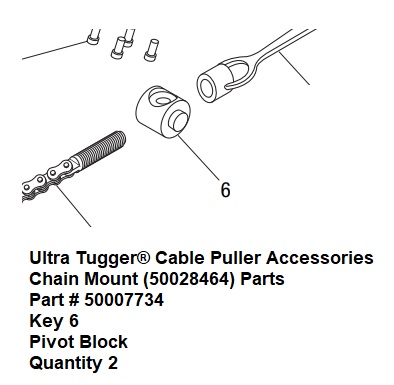Catalog # 00773 Part # 50007734 Upc # 783310007739 Pivot Block Quantity 2 Weight 0.3 Lb Ultra Tugger® Cable Puller Accessories Chain Mount (50028464) Parts