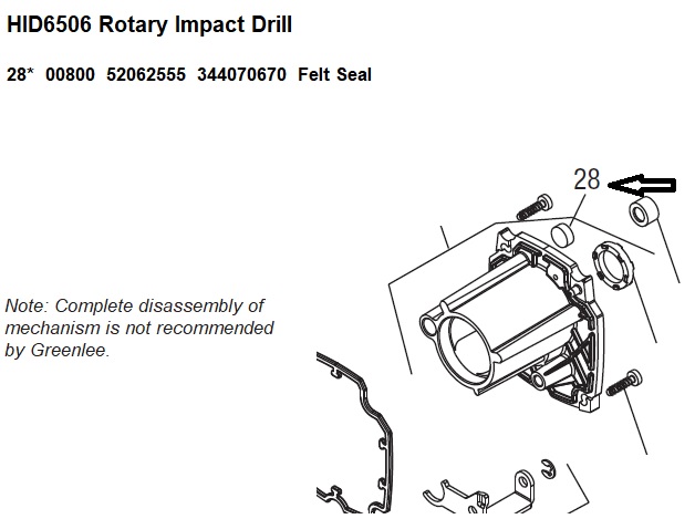 Greenlee 00800 Felt Seal (Hid6506) 52062555 / 783310008002