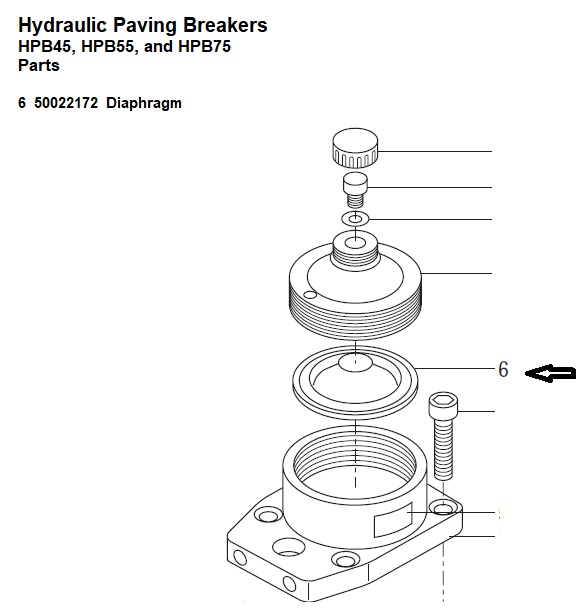 Hydraulic Paving Breakers HPB45, HPB55, and HPB75 Parts