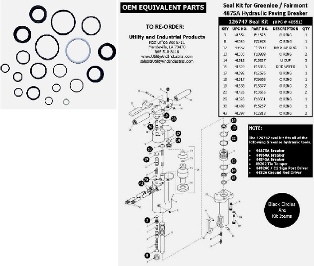 Catalog # 126747 Part # 50405512 H4875A Paving Breaker Packing Kit Upc # 783310405511