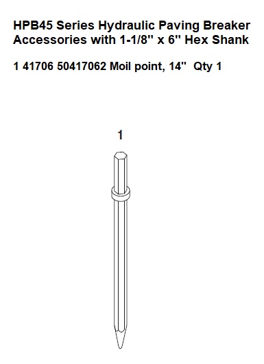 Hpb45 Series Hydraulic Paving Breaker Accessories With 1-1/8" X 6" Hex Shank